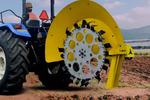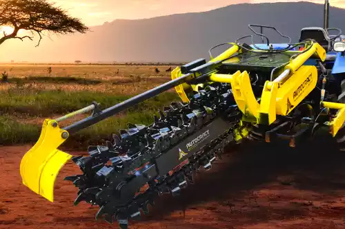 A sleek and compact trencher that is both efficient and effective. Most suited for soft, clay and medium soils, this trencher can seamlessly be mounted on small and medium powered tractors (45HP). A reliable and cost-effective trenching solution for narrow lanes. Compact Trenchers are durable, agile, easy to use, and can achieve a max trench depth of 1.2 mtr.